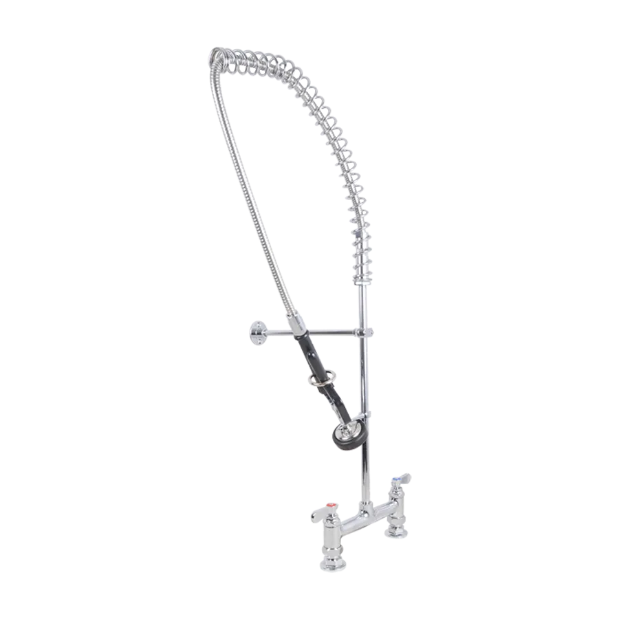 Upgrade workflow with adaptable resources through the John Boos PB-PRD-2LF Pre-Rinse Faucet Assembly. Designed specifically for commercial restaurant use, this pre-rinse faucet assembly is a game-changer in the kitchen. With its flexible stainless steel hose and 4-inch centers, it provides convenience and versatility for various tasks. The 1/4 turn ceramic cartridges ensure smooth operation, while the color-coded hot/cold indicators make temperature adjustments effortless. The integral check valve prevents backflow, ensuring the safety and cleanliness of your water supply. This faucet assembly is NSF and cCSAus certified, meeting the highest standards of quality and safety. It is also ADA compliant and lead-free, making it suitable for all restaurant environments. The package includes a 12-inch wall bracket for easy installation. Upgrade your restaurant's workflow with the John Boos PB-PRD-2LF Pre-Rinse Faucet Assembly and experience enhanced efficiency and reliability.