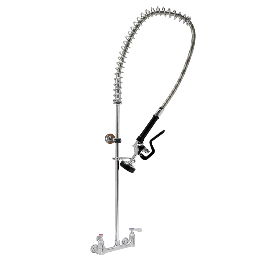 Optimize efficiency with clever solutions through the John Boos PB-PRW-1LF Pre-Rinse Faucet Assembly. Designed specifically for commercial restaurant use, this pre-rinse unit is a game-changer in the kitchen. With its splash mount and flexible stainless steel hose, it offers convenience and versatility, allowing you to easily reach every corner of your sink. The 8-inch centers and 1/4 turn ceramic cartridges ensure smooth operation and durability, while the color-coded hot/cold indicators make temperature control a breeze. The integral check valve prevents backflow, ensuring the safety of your water supply. This faucet assembly is NSF and cCSAus certified, meeting the highest standards of quality and safety. It is also ADA compliant and lead-free, making it suitable for any restaurant environment. With the included 12-inch wall bracket, installation is a breeze. Upgrade your kitchen with the John Boos PB-PRW-1LF Pre-Rinse Faucet Assembly and experience the difference in efficiency and performance.