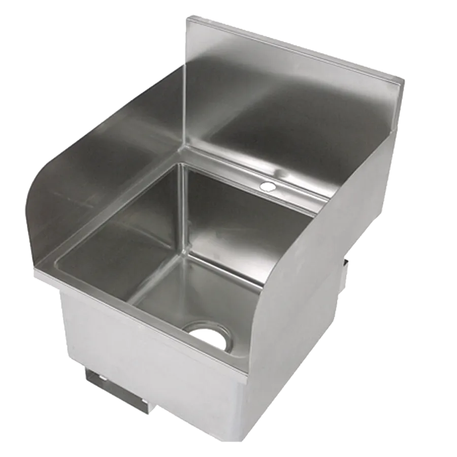 Revitalize operations with flexible choices using the John Boos PBHS-W-1616-SSLR Hand Sink. This wall-mounted sink is designed to meet the demands of a busy commercial restaurant. The sink features a 16" x 16" front-to-back x 10" deep bowl, providing ample space for handwashing and other tasks. The 12" high backsplash helps to prevent water splashes and keeps the surrounding area clean. Made of durable 16-gauge 300 stainless steel, this sink is built to withstand the rigors of a commercial kitchen. It includes a mounting bracket for easy installation. The left and right side splashes further enhance the functionality of the sink, ensuring that water stays contained within the bowl. With a 3-1/2" drain opening and basket drain, this sink efficiently drains water, keeping the sink area clean and hygienic. NSF and CSA-Sanitation certified, this hand sink is a reliable choice for any commercial restaurant. Please note that the faucet is not included.
