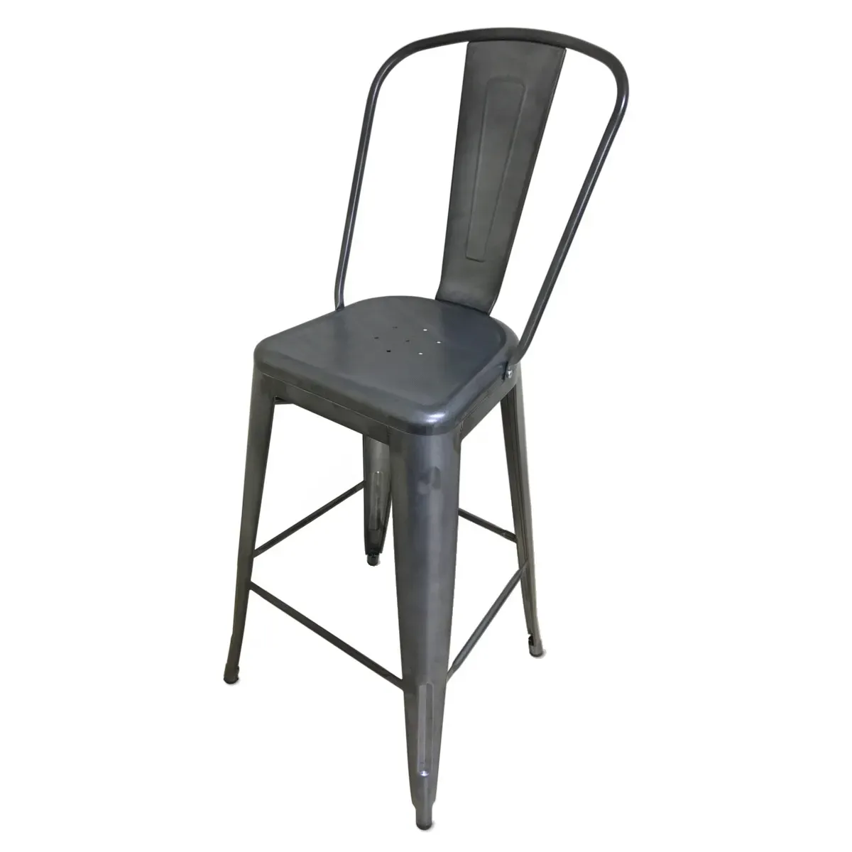 Achieve kitchen supremacy with the JustChair Manufacturing G42630 Bar Stool. Designed for both indoor and outdoor use, this industrial collection bar stool is perfect for commercial restaurant settings. Its galvanized steel back and seat provide durability and a sleek look, while the welded construction ensures stability and longevity. The galvanized steel frame and stacking bumpers add to its strength and convenience. The black insert-style rubberized plastic glides protect your floors from scratches and provide easy movement. With a gunmetal finish, this bar stool adds a touch of sophistication to any space. The Quick Ship feature allows for easy assembly, as it ships with the back unattached and includes all necessary hardware and tools. Whether you're setting up a trendy outdoor patio or a stylish indoor bar, the JustChair Manufacturing G42630 Bar Stool is the perfect choice for achieving a modern and functional restaurant ambiance.