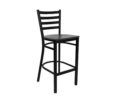 Take your kitchen to the next level with the JustChair Manufacturing M20130-BLK-VS Bar Stool. This indoor bar stool is designed to enhance the ambiance of any commercial restaurant. With its ladder back design and veneer wood seat, it offers both style and comfort for your customers. The welded 18 gauge steel frame with a textured black powder coat finish ensures durability and longevity, even in high-traffic areas. The footrest provides additional support, allowing your guests to sit back and relax. The black nylon glides protect your floors from scratches and scuffs. Whether you're running a trendy bar or a cozy cafe, the JustChair Manufacturing M20130-BLK-VS Bar Stool is the perfect addition to elevate your establishment's seating experience.