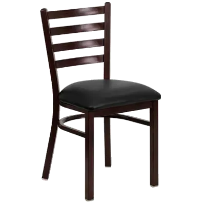 Enhance your commercial kitchen with the JustChair Manufacturing WL20118-PS-BVS Side Chair. This chair is designed to provide comfort and style to your restaurant patrons. The ladder back design adds a touch of elegance, while the upholstered 2-1/2" padded seat ensures maximum comfort during long meals. The welded 18 gauge steel frame with a wood-look finish not only adds durability but also gives the chair a sophisticated look. The flat white nylon glides protect your floors from scratches and make it easy to move the chair around. The black vinyl upholstery is not only easy to clean but also adds a sleek and modern touch to your restaurant decor. With its Quick Ship option, you can have this chair delivered to your restaurant in no time. Upgrade your dining experience with the JustChair Manufacturing WL20118-PS-BVS Side Chair.