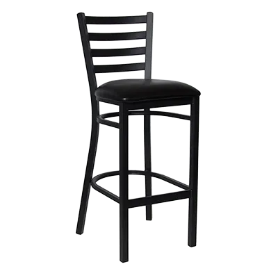 Achieve kitchen supremacy with the JustChair Manufacturing WL20130-PS-BVS Bar Stool. This indoor bar stool is designed to elevate your restaurant's ambiance while providing utmost comfort to your guests. The ladder back design adds a touch of sophistication, while the upholstered 2-1/2" padded seat ensures a cozy seating experience. Crafted with a welded 18 gauge steel frame and a wood-look finish, this bar stool combines durability with a stylish aesthetic. The footrest offers additional support, making it perfect for long hours of dining. The flat white nylon glides protect your floors from scratches and scuffs. With its black vinyl upholstery, this bar stool is easy to clean and maintain, ensuring its longevity in a busy restaurant environment. Whether you're running a trendy bar or a fine dining establishment, the JustChair Manufacturing WL20130-PS-BVS Bar Stool is the perfect addition to enhance your customers' dining experience.
