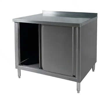 Revolutionize service with the Klingers Trading BCB2460-W/SHELF Work Table. This versatile option is perfect for commercial restaurant use, offering a convenient and efficient workspace. The stainless steel construction ensures durability and easy cleaning, making it ideal for busy kitchen environments. The cabinet base with sliding doors provides ample storage space for utensils, ingredients, and equipment, keeping everything organized and within reach. The 2-inch rear up-turn and turned-down edges prevent spills and messes, while the included middle shelf adds even more storage options. The 6-inch legs with adjustable bullet feet allow for easy leveling on any surface. With its sleek design and practical features, this work table is a must-have for any commercial kitchen. Trust Klingers Trading for quality and reliability.