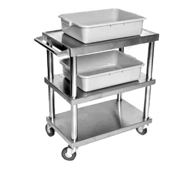 Introducing the Klingers Trading CS3SM-CART, a versatile and practical solution for commercial restaurant use. Streamline your setup with this utility bus cart, designed to make your bussing tasks a breeze. Made from durable 430 stainless steel, this cart is built to withstand the demands of a busy restaurant environment. With a generous capacity of 250lbs, it can easily accommodate three bus trays, allowing you to transport dirty dishes, glassware, and utensils with ease. The open design of the cart provides easy access and efficient loading and unloading. Equipped with four 4" ball bearing swivel casters, this cart glides smoothly across any surface, making it effortless to maneuver through crowded dining areas. Whether you need to clear tables or restock supplies, the Klingers Trading CS3SM-CART is the perfect companion for your commercial restaurant needs.
