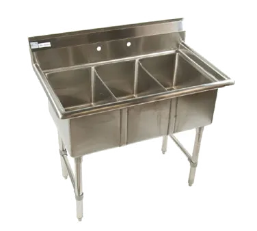 Revolutionize service with the Klingers Trading ECS3SM Sink, a versatile option designed specifically for commercial restaurant use. Crafted with 18/304 stainless steel construction, this economy sink is built to withstand the demands of a busy kitchen. The three compartment design provides ample space for washing, rinsing, and sanitizing dishes, while the 9-inch backsplash helps maintain a clean and hygienic work area. With three 12-inch wide by 20-inch front-to-back by 11-inch deep compartments, this sink offers plenty of room for even the largest pots and pans. The stainless steel gussets, legs, crossbracing, and adjustable bullet feet ensure stability and durability, while the 8-inch O.C splash mount faucet holes allow for easy installation of your preferred faucet. Trust Klingers Trading to deliver a high-quality sink that will streamline your restaurant's dishwashing process.