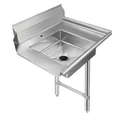 Introducing the Klingers Trading, SDT72R, Soiled Dishtable, a practical alternative for streamlining setup in commercial restaurants. Crafted with 16/304 stainless steel, this dishtable ensures durability and longevity, making it a reliable addition to any bustling kitchen. The 72"W x 30"D size provides ample space for efficient dishwashing operations, while the 9"H backsplash prevents water splashes and keeps the surrounding area clean. Equipped with a 20" x 20" pre-rinse sink and a single faucet hole, this dishtable offers convenience and versatility. The stainless steel legs and crossrails provide stability and support, ensuring a sturdy workstation. ETL-Sanitation certified, this dishtable meets the highest hygiene standards. Whether it's a busy restaurant or a bustling cafeteria, the Klingers Trading, SDT72R, Soiled Dishtable is the perfect solution for optimizing dishwashing operations and maintaining a clean and efficient kitchen.