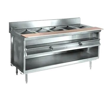 Elevate service with innovation using La Rosa Refrigeration's L-81148-28 Serving Counter. Designed specifically for commercial restaurant use, this hot food table is a game-changer in the industry. With its electric operation and three 12" x 20" openings, it provides ample space to keep your dishes warm and ready to serve. The water bath and heater ensure consistent temperature control, while the stainless steel top and integral dish shelf offer durability and convenience. The open cabinet base and undershelf provide additional storage options, while the 9-1/2" x 1/2" cutting board allows for easy food preparation. Made in Detroit with full finished welds and 304 type stainless steel, this serving counter is built to last. Complete with a faucet, painted exterior ends, and adjustable legs, it combines functionality and style seamlessly. Elevate your restaurant's service and efficiency with La Rosa Refrigeration's L-81148-28 Serving Counter.