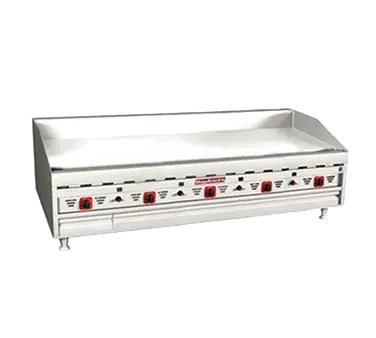 Create culinary magic with the Magikitchn MKG-60 Gas Countertop Griddle. This high-quality griddle is designed to meet the demands of a busy commercial restaurant kitchen. With a spacious 59-3/4" W x 24" D cooking surface, you'll have plenty of room to cook multiple dishes at once. The 1" thick polished griddle plate ensures even heat distribution for consistent cooking results. The snap-action thermostat and piezo ignitor make it easy to control and ignite the griddle, while the grease chute and box, along with the front grease trough, help to keep your workspace clean and tidy. The 3" side splash provides added protection against spills and splatters. Made of durable stainless steel, this griddle is built to withstand the rigors of a commercial kitchen. With 150,000 BTU of power, this griddle delivers exceptional performance and efficiency. Trust Magikitchn to deliver the perfect griddle for your restaurant needs.