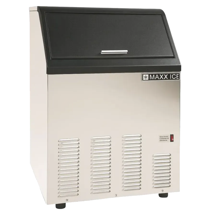 Maximize convenience using the efficient tool with the Maxx Ice, MIM100, Ice Maker with Bin, Cube-Style. This ice maker is designed to meet the demands of a commercial restaurant, providing a reliable and consistent supply of ice. With a production capacity of approximately 110 lbs. per day and a built-in storage capacity of 35 lbs., you'll never run out of ice during peak hours. The cube-style bullet ice produced by this machine is perfect for a variety of applications, from refreshing beverages to chilling seafood displays. The automatic overfill prevention feature ensures hassle-free operation, while the stainless steel construction guarantees durability and easy cleaning. This ice maker is also energy-efficient, with an ENERGY STAR certification, helping you save on utility costs. Trust the Maxx Ice, MIM100, Ice Maker with Bin, Cube-Style to keep your restaurant running smoothly and your customers satisfied.