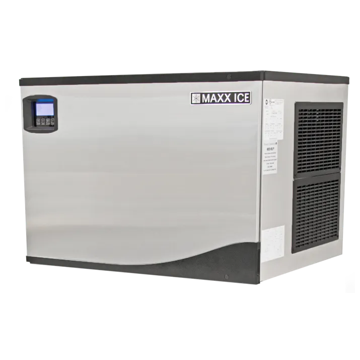 Optimize operations with the Maxx Ice MIM500N Ice Maker, Cube-Style. This versatile solution from Maxx Ice is designed to meet the demands of commercial restaurants. With a production capacity of approximately 521 lbs. of slab cube ice per day, this air-cooled, self-contained condenser ice maker ensures a steady supply of ice for your establishment. The cube-style ice produced by this machine is perfect for a variety of applications, from refreshing beverages to food preservation. The stainless steel construction with black trim not only adds a sleek look to your kitchen but also ensures durability and longevity. The digital controls make it easy to operate and monitor the ice production process. NSF, cULus, and CE certifications guarantee the quality and safety of this ice maker. Upgrade your restaurant's ice production capabilities with the Maxx Ice MIM500N Ice Maker, Cube-Style.
