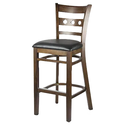 Make Every Seating Memorable with MKLD Furniture, A6025-BS BV, Bar Stool, Indoor. This stylish bar stool is designed to elevate the dining experience in commercial restaurants. With its ladder back featuring diamond cutouts, it adds a touch of elegance to any establishment. The upholstered seat provides comfort for patrons, allowing them to relax and enjoy their meals. Crafted from European beechwood, this bar stool is not only durable but also adds a natural and sophisticated look to the space. The footrest ensures that customers can sit comfortably for extended periods. Additionally, the black vinyl upholstery is not only easy to clean but also adds a sleek and modern touch to the overall design. With plastic floor glides, this bar stool is safe to use on any type of flooring. Elevate your restaurant's ambiance and provide a comfortable seating option with MKLD Furniture, A6025-BS BV, Bar Stool, Indoor.