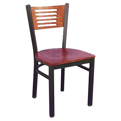 Make Every Seat Unforgettable with MKLD Furniture, AM836C V, Chair, Side, Indoor. This side chair is designed to elevate the dining experience in commercial restaurants. With a fully welded 16 gauge steel frame and a black powder coat finish, it offers durability and style that can withstand the demands of a busy restaurant environment. The wood back with 5-slot cut outs adds a touch of elegance, while the veneer seat provides comfort for guests. The poly non-marring floor glides ensure that your floors stay protected. Whether you're running a fine dining establishment or a casual eatery, these side chairs from MKLD Furniture are the perfect addition to create a memorable dining experience for your guests.