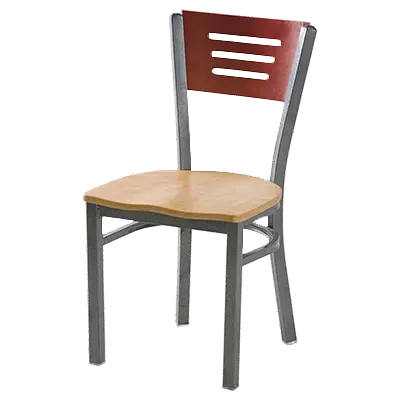 Upgrade the ambiance of your commercial restaurant with the MKLD Furniture AM836D SOLID Side Chair. Crafted with a solid wood seat and a fully welded 16 gauge steel frame, this chair is built to withstand the demands of a busy restaurant environment. The wood back features three-slot cutouts, adding a touch of elegance to the design. The black powder coat finish not only enhances the chair's durability but also gives it a sleek and modern look. With poly non-marring floor glides, you can easily move the chair without worrying about damaging your floors. Elevate your restaurant's style and provide your guests with superior seating options with the MKLD Furniture AM836D SOLID Side Chair.