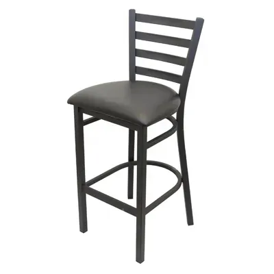 Enhance comfort and style with the MKLD Furniture AM841-BS BV Bar Stool. Designed specifically for commercial restaurant use, this bar stool combines functionality and aesthetics to elevate your dining experience. The ladder back design provides excellent support for your customers, ensuring their comfort throughout their meal. The upholstered seat adds an extra layer of luxury, making your guests feel pampered and valued. Crafted with a fully welded 16 gauge steel frame, this bar stool is built to withstand the rigors of a busy restaurant environment. The footrest offers additional convenience, allowing your customers to relax and enjoy their time at the bar. With plastic floor glides, this bar stool won't damage your floors, ensuring a long-lasting investment. The black powder coat finish and black vinyl upholstery exude sophistication and elegance, making this bar stool a perfect addition to any upscale restaurant or bar. Trust MKLD Furniture for high-quality, durable, and stylish furniture that enhances your restaurant's ambiance.