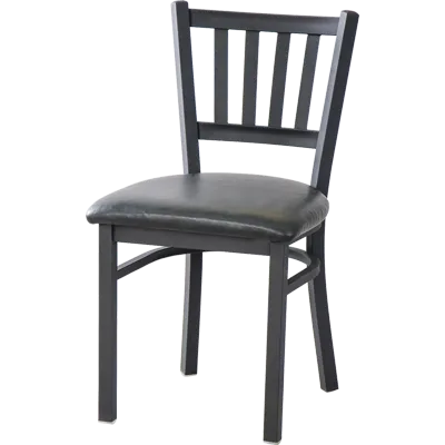 Introducing the MKLD Furniture AM842 BV Chair, Side, Indoor, a must-have for elevating your dining experience with quality furniture. Designed with commercial restaurant use in mind, this side chair combines style, durability, and comfort to enhance any dining space. The slat back with an open bottom adds a touch of elegance, while the upholstered seat ensures maximum comfort for your guests. The fully welded 16 gauge steel frame and black powder coat finish guarantee long-lasting durability, even in high-traffic areas. With plastic floor glides and black vinyl upholstery, this chair is not only easy to clean but also protects your floors from scratches. Trust MKLD Furniture to provide you with the perfect seating solution that combines functionality, style, and durability for your commercial restaurant needs.