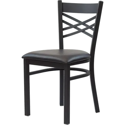Furnish Your restaurant for Success with MKLD Furniture, AM843 BV, Chair, Side, Indoor. This side chair is designed to elevate the dining experience in your commercial restaurant. With its criss-cross back and upholstered seat, it offers both style and comfort for your patrons. The fully welded 16 gauge steel frame ensures durability and stability, making it perfect for high-traffic areas. The black powder coat finish adds a sleek touch, while the plastic floor glides protect your floors from scratches. The black vinyl upholstery is not only easy to clean but also adds a touch of sophistication to your establishment. Trust MKLD Furniture to provide you with quality and reliable seating options that will enhance the ambiance of your commercial restaurant.