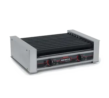 Revolutionize your restaurant workflow with the Nemco 8010SX Hot Dog Grill. This Roll-A-Grill Hot Dog Grill is designed to meet the demands of a busy commercial restaurant. With its 6 GripsIt coated rollers, it can easily handle up to 10 hot dogs at a time, allowing you to serve up to 200 hot dogs per hour. The aluminum and stainless steel construction ensures durability and easy cleaning, while the 7 setting heat control switch gives you precise control over the cooking process. Powered by a single motor with 330 watts of power, this grill is both efficient and reliable. NSF and cETLus certified, it meets the highest standards of safety and sanitation. Upgrade your restaurant's hot dog game with the Nemco 8010SX Hot Dog Grill.
