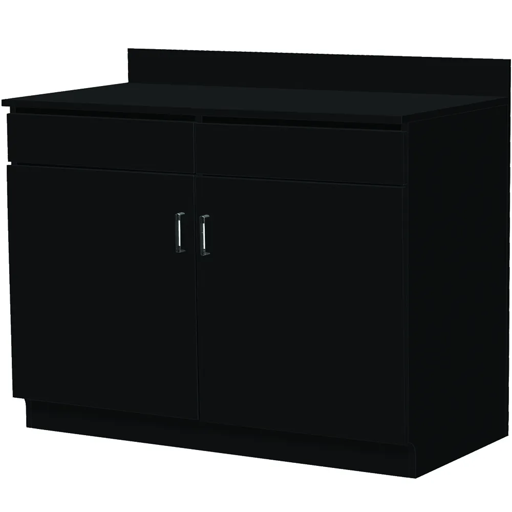 Create a Unique Atmosphere with Oak Street's M8220-BLK-ASSEMBLED Wait Station Cabinet. This sleek and functional cabinet is designed specifically for commercial restaurant use, providing a stylish and efficient solution for your wait staff. With a spacious 48"W x 24-1/2"D work surface and a 4" backsplash, this cabinet offers ample space for organizing menus, order pads, and other essentials. The two drawers and two doors provide convenient storage for utensils, napkins, and condiments, while the two adjustable shelves allow for customizable storage options. Made with durable melamine and finished in a sleek black, this cabinet is not only practical but also adds a touch of elegance to your establishment. Oak Street's M8220-BLK-ASSEMBLED Wait Station Cabinet ships fully assembled, saving you time and effort. Elevate your restaurant's efficiency and style with this exceptional piece of furniture.