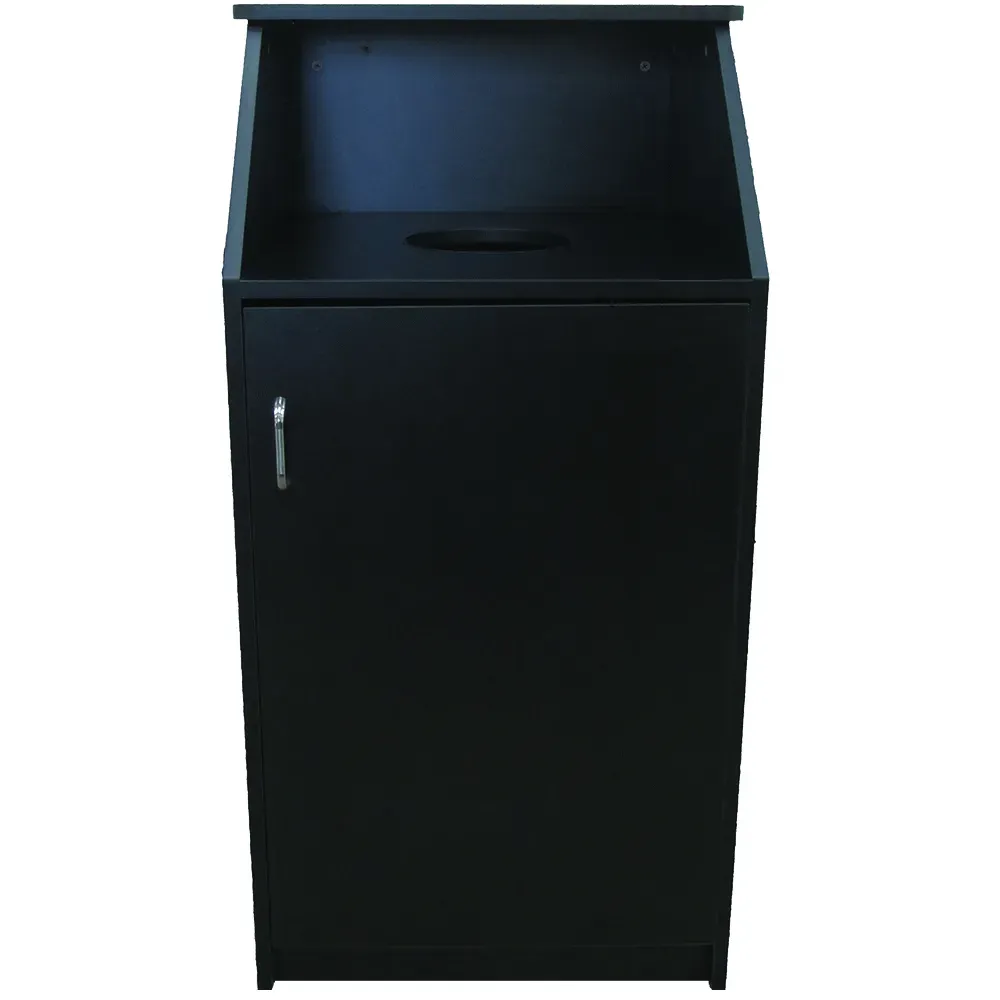 Create a Unique Atmosphere with the Oak Street M8510-BLK-ASSEMBLED Trash Receptacle, Cabinet Style. This sleek and functional waste receptacle is designed specifically for commercial restaurant use. With its 8" diameter round opening and 20" wide interior, it can easily accommodate high volumes of trash, making it perfect for busy restaurant environments. The black finish adds a touch of sophistication to any space, while the assembled design ensures quick and hassle-free setup. The Oak Street M8510-BLK-ASSEMBLED Trash Receptacle requires a 25-gallon trash liner (not included), providing ample capacity for all your restaurant's waste disposal needs. Whether you're running a bustling diner or an upscale eatery, this trash receptacle is a must-have for maintaining cleanliness and creating a pleasant dining experience. Trust Oak Street, a reputable vendor in the industry, to deliver quality and durability with every product.