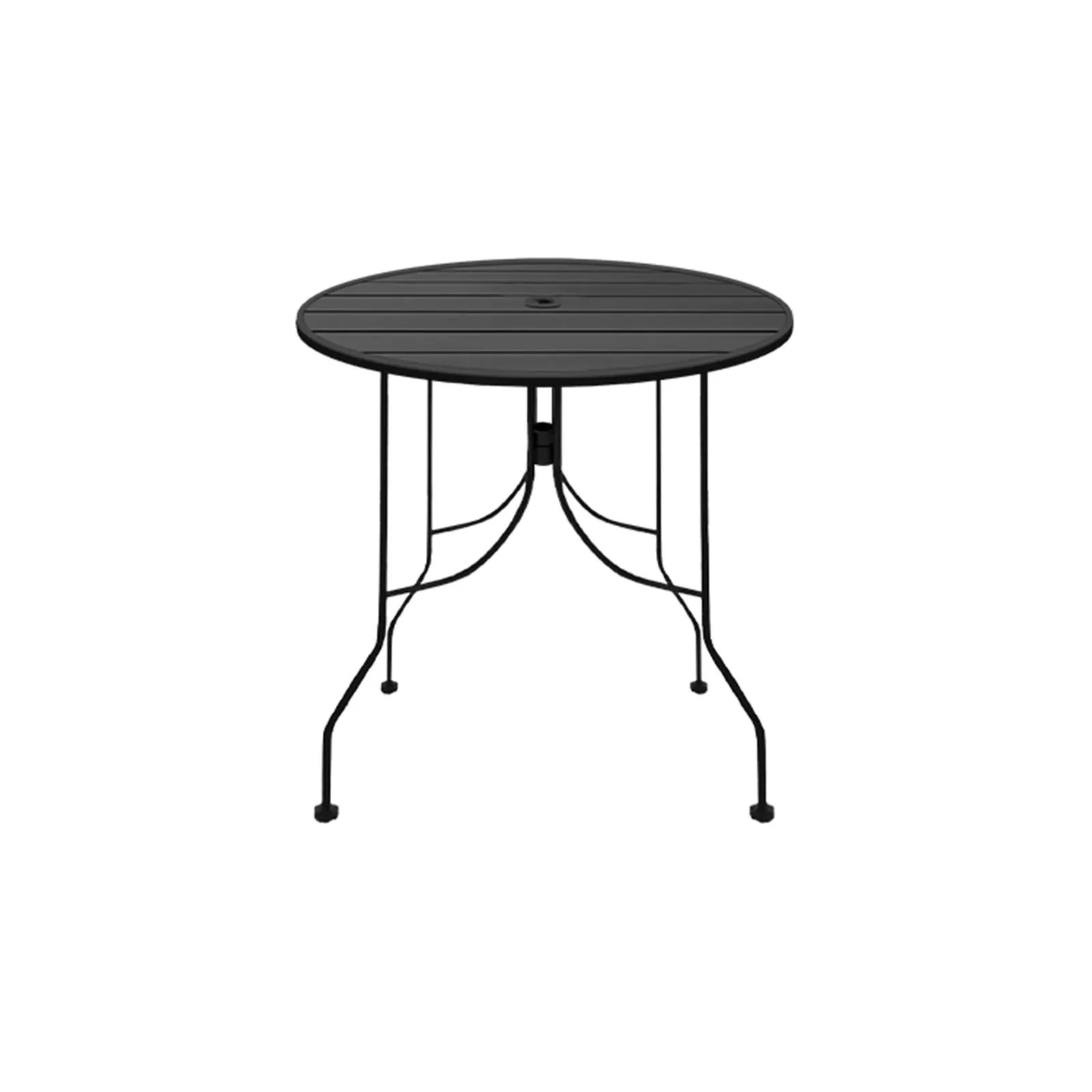 Upgrade your venue with the Oak Street OB30R-BAR Outdoor Table. This top-quality piece is designed specifically for commercial restaurant use, making it the perfect addition to any outdoor dining area. The round, bar-height table features a durable rolled steel top with a sleek black finish, ensuring long-lasting performance and a stylish aesthetic. With a 30" diameter and a 2" umbrella hole, this table provides ample space for guests to enjoy their meals while staying protected from the sun. The steel base adds stability and durability, making it suitable for both indoor and outdoor use. Whether you're setting up a patio, beer garden, or rooftop dining area, this Oak Street table is sure to impress your customers and enhance their dining experience. Upgrade your restaurant today with this exceptional outdoor table.