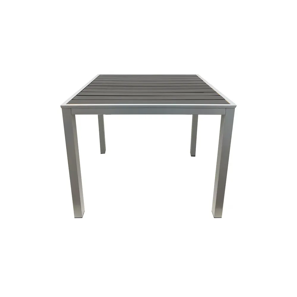 Enhance comfort and style in your commercial restaurant with the Oak Street OD-TK3030-G Outdoor Table. This teak series table features a sleek and elegant design, perfect for creating a welcoming atmosphere for your guests. The gray slats and silver e-coated steel frame with exterior powder coating add a touch of sophistication to any outdoor dining area. The 1-piece upper steel frame ensures rigidity and durability, making this table a long-lasting investment for your restaurant. With its weather-resistant synthetic teak planks, this table can withstand the elements, allowing you to use it year-round. The table ships KD (knocked down) for easy transportation and requires simple leg to frame assembly. Whether you're serving brunch, lunch, or dinner, this Oak Street outdoor table is a must-have for any commercial restaurant looking to elevate their outdoor dining experience.