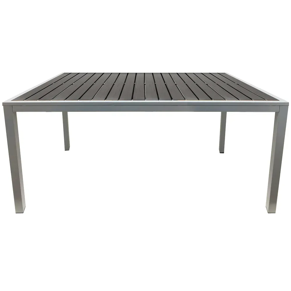 Upgrade your restaurant's outdoor seating area with the Oak Street OD-TK3048-G Outdoor Table. This top-quality table is designed to withstand the demands of a commercial restaurant setting while adding a touch of elegance to your space. The table features a durable and weather-resistant synthetic teak plank top, ensuring it can withstand the elements and heavy use. The gray slats and silver e-coated steel frame with exterior powder coating give the table a sleek and modern look. With a 30" x 48" size, this table provides ample space for guests to dine comfortably. The one-piece upper steel frame adds rigidity and stability, while the simple leg to frame assembly makes it easy to set up. Upgrade your venue with this stylish and functional outdoor table from Oak Street.