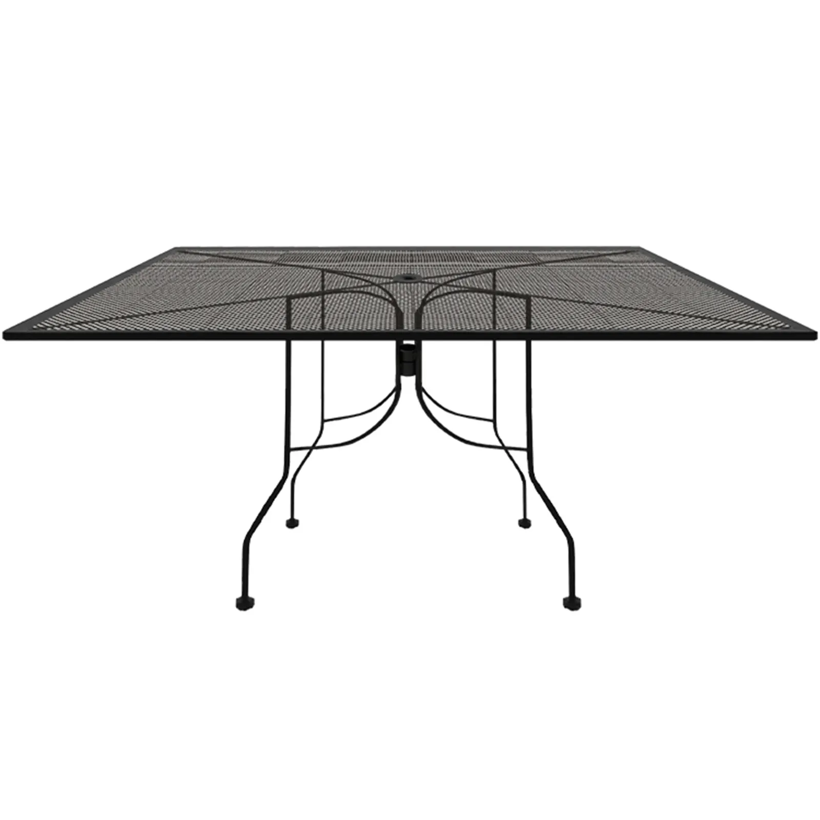 Elevate Guests' Enjoyment with the Oak Street OD3048-STD Outdoor Table. Designed specifically for commercial restaurant use, this rectangular table is perfect for indoor and outdoor dining areas. The punched steel mesh top not only adds a modern touch to your restaurant's ambiance but also provides durability and easy maintenance. The 30" x 48" size offers ample space for guests to enjoy their meals comfortably. With a standard height and a steel base, this table ensures stability and longevity, even in high-traffic areas. The black finish adds a sleek and sophisticated look to any restaurant decor. Plus, the table comes with a 2" umbrella hole, allowing you to provide shade on sunny days. Whether you're serving breakfast, lunch, or dinner, the Oak Street OD3048-STD Outdoor Table is a must-have for enhancing your guests' dining experience.