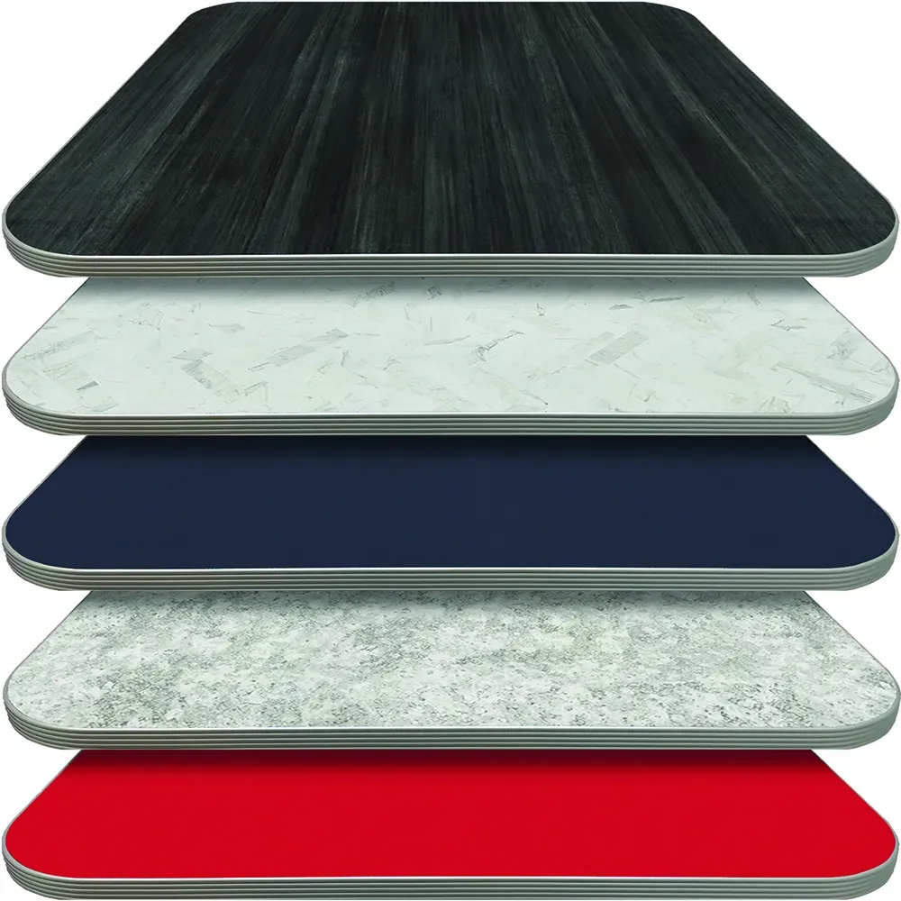 Upgrade the ambiance of your commercial restaurant with the Oak Street RT2424-1 Table Top. This square table top measures 24" x 24" and is 1-1/4" thick, providing a sturdy and durable surface for your customers to enjoy their meals. The Tier 1 laminate surface is not only attractive but also easy to clean, making it perfect for busy restaurant environments. The table top features 3" radius corners and a retro metallic silver rubber rippled t-mold, adding a touch of style to your establishment. Crafted from industrial-grade particle board, this table top is built to withstand the demands of a commercial restaurant setting. Whether you're opening a new restaurant or giving your current space a makeover, the Oak Street RT2424-1 Table Top is the perfect choice for upgrading your restaurant's ambiance with superior pieces.