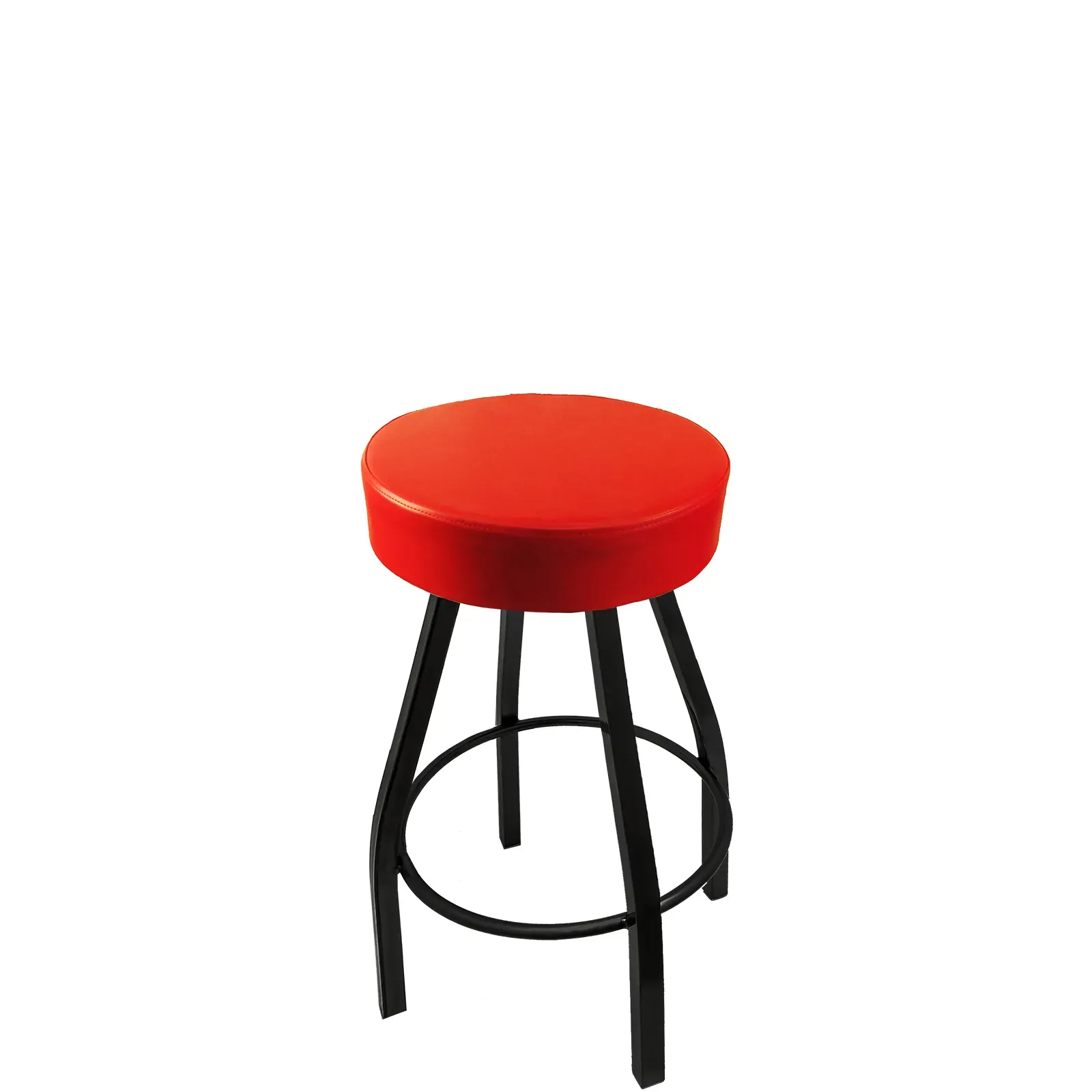Upgrade your venue with the Oak Street SL1132-RED Bar Stool. This swivel bar stool is designed for commercial restaurant use, offering top-quality craftsmanship and functionality. The backless design and upholstered button top seat provide a sleek and modern look, while the import flat swivel with metal ball bearings ensures smooth and effortless rotation. The single ring base and black powder coat tapered frame add stability and durability to withstand the demands of a busy restaurant environment. The red vinyl seat adds a pop of color and is easy to clean and maintain. With its high-quality construction and attention to detail, this bar stool is a perfect addition to any indoor restaurant setting. Trust Oak Street, a reputable vendor in the industry, to deliver exceptional products that enhance your establishment's ambiance and comfort.