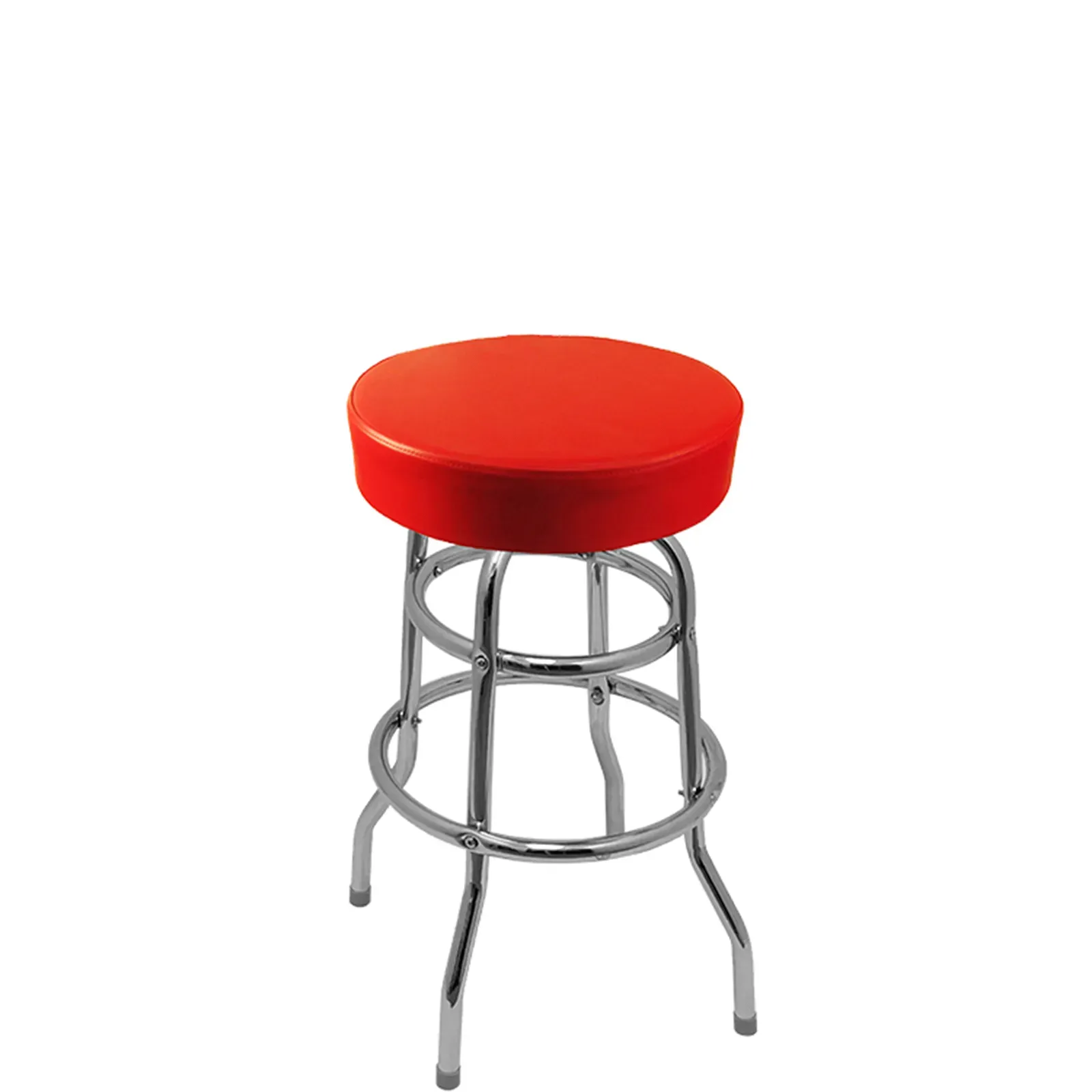 Create an atmosphere that stands out with the Oak Street SL3129-RED Bar Stool. Designed for commercial restaurant use, this swivel bar stool is a perfect addition to any indoor dining space. The XL upholstered button top seat provides comfort and style, while the flat swivel with metal ball bearings ensures smooth and effortless movement. The double ring and chrome frame add durability and stability, making this bar stool a reliable choice for busy restaurant environments. The non-marring poly glides protect your floors from scratches and scuffs. With its vibrant red vinyl seat, this bar stool adds a pop of color to your restaurant decor. Plus, the seat ships unattached for easy assembly. Elevate your restaurant's ambiance with the Oak Street SL3129-RED Bar Stool.