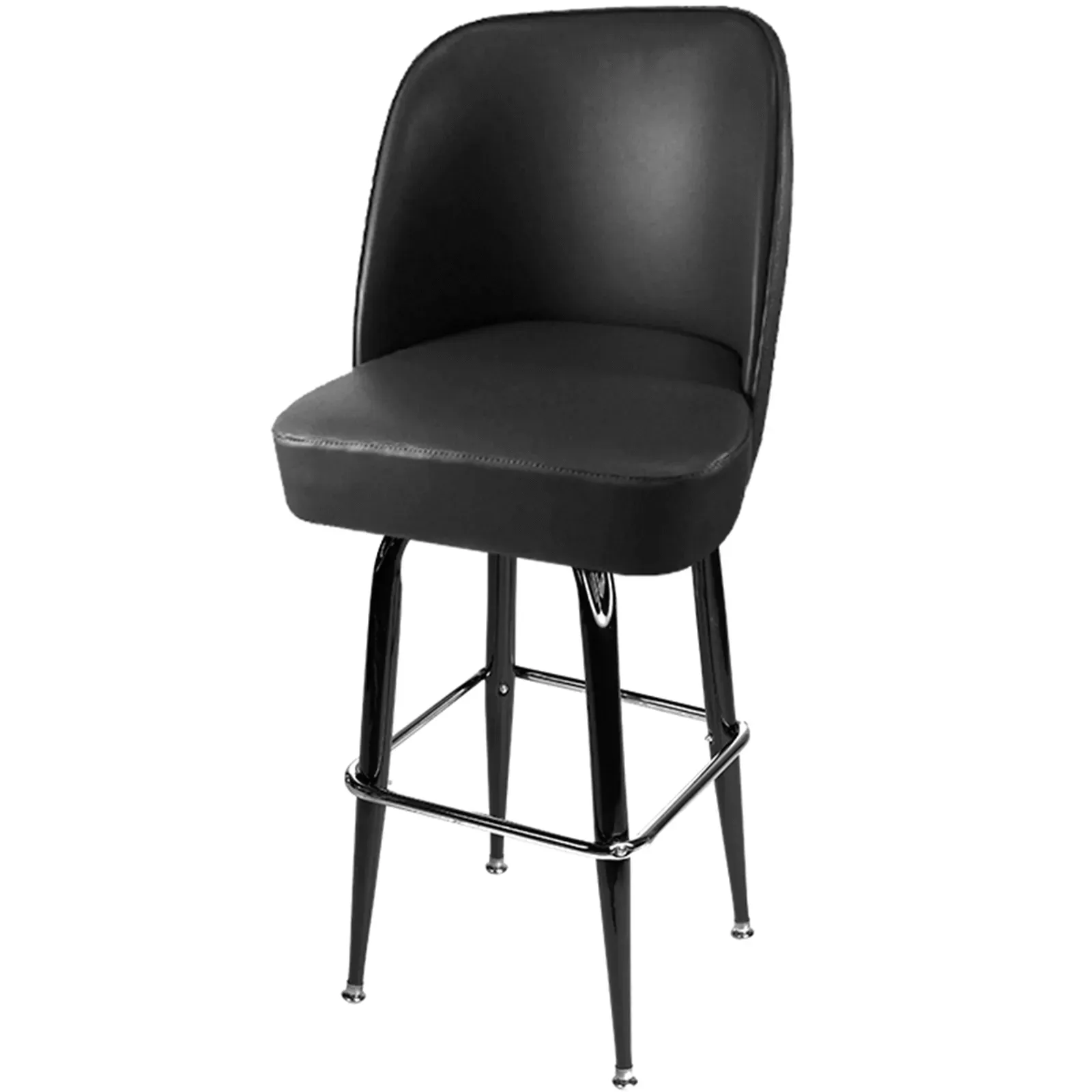 Furnish Your Space for Success with the Oak Street SL3133-BLK Bar Stool. Designed for commercial restaurant use, this swivel bar stool combines style and functionality to enhance your dining area. The upholstered bucket seat provides comfort for your guests, while the non-waterfall front ensures easy entry and exit. The American-made swivel with a 4-degree slant allows for smooth movement, and the single chrome footring adds stability. The square frame features a sleek gloss black finish, adding a touch of sophistication to your space. With non-marring poly glides, this bar stool won't damage your floors. The black vinyl seat is shipped unattached for convenience. Trust Oak Street, a reputable vendor in the industry, to deliver a high-quality product that meets your restaurant's needs. Elevate your establishment with the Oak Street SL3133-BLK Bar Stool.