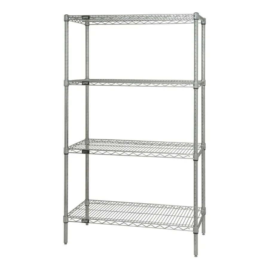 Experience Professional Foodservice with the Quantum Foodservice WR74-1860BK Shelving Unit. This versatile shelving unit is designed to meet the demands of a commercial restaurant setting. With a 800 lb. capacity per shelf, it can easily accommodate heavy kitchen equipment, supplies, and ingredients. The black epoxy antimicrobial finish ensures a clean and hygienic storage solution, making it suitable for dry, high humidity, wet, or walk-in cooler applications. The NSF approval guarantees its compliance with food safety standards. The unit includes four wire shelves, four posts, sixteen split sleeves, four post levelers, and four post inserts, providing ample storage space and flexibility. With a 15-year warranty, you can trust in its durability and longevity. The Quantum Foodservice WR74-1860BK Shelving Unit is shipped KD for easy assembly and is a reliable choice for any commercial restaurant looking for a sturdy and efficient storage solution.