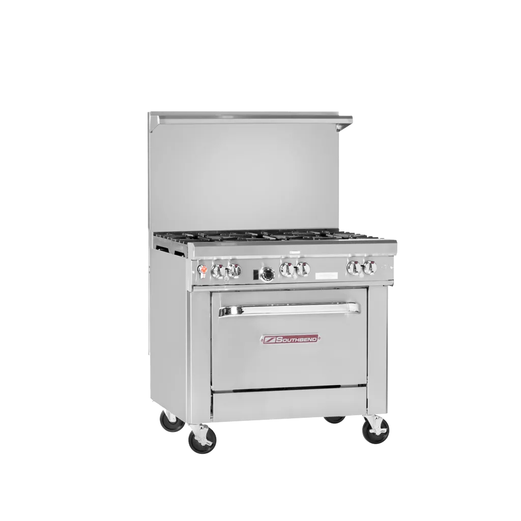 Introducing the Southbend, 4362C, Range, 36" Restaurant, Gas. Drive restaurant profitability with this ultimate restaurant range. Designed by Southbend, a trusted vendor in the industry, this gas range is perfect for commercial restaurant use. With six non-clog burners and wavy grates, you can easily cook multiple dishes simultaneously, increasing efficiency and productivity in the kitchen. The standing pilot ensures quick and reliable ignition, while the cabinet base provides ample storage space for your cooking essentials. The stainless steel front, sides, shelf, and adjustable legs not only add durability but also make cleaning a breeze. With a powerful 162,000 BTU, this range delivers exceptional cooking performance. It is CSA and NSF certified, guaranteeing its quality and safety. Don't miss out on the opportunity to enhance your restaurant's cooking capabilities with the Southbend, 4362C, Range, 36" Restaurant, Gas.