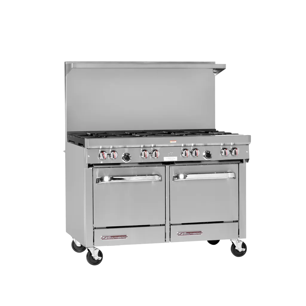 Elevate your cuisine with the Southbend S48AC-4G Range, a must-have for any commercial restaurant. This 48" gas range is designed to meet the demands of a busy kitchen, offering a griddle and manual controls for precise cooking. The range also includes a convection oven and a cabinet base, providing versatility and ample storage space. With a snap action thermostat and two removable crumb drawers, this range ensures efficient and easy cleaning. The hinged lower valve panel allows for quick access to the components, while the stainless steel front and sides guarantee durability and a sleek appearance. The range comes with two racks and a removable shelf, allowing you to customize the cooking space to suit your needs. With its high BTU rating and certifications from cCSAus, CSA Flame, CSA Star, and NSF, the Southbend S48AC-4G Range is a reliable and efficient choice for any commercial kitchen.