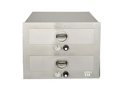 Upgrade performance with the Toastmaster 3B84AT09 Warming Drawer, Built-In. This food warming drawer unit is designed to meet the demands of a commercial restaurant setting. With two spacious drawers and a thermostatic control system, you can easily keep your food at the perfect temperature for serving. The fully insulated design ensures that heat is evenly distributed, while the stainless steel exterior finish adds durability and a sleek look to your kitchen. Each drawer can hold up to two 12" x 20" x 5" pans, providing ample space for your culinary creations. Made in the USA and certified by cETLus and ETL-Sanitation, this warming drawer unit is a reliable and safe choice for any restaurant. Upgrade your kitchen's efficiency and keep your dishes warm and ready to serve with the Toastmaster 3B84AT09 Warming Drawer, Built-In.