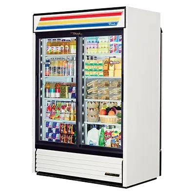Enhance your commercial kitchen with the True Manufacturing GDM-47RL-HC-LD Refrigerator Merchandiser. This two-section refrigerated merchandiser is designed to meet the needs of busy restaurants. With eight shelves, it offers ample space to display a wide variety of food and beverages. The two front Low-E thermal glass sliding doors and two rear solid doors provide easy access to the contents while keeping them at the perfect temperature. The LED interior lights illuminate the products, making them more enticing to customers. The powder-coated steel exterior and white aluminum interior with a stainless steel floor ensure durability and easy cleaning. This merchandiser uses R290 Hydrocarbon refrigerant, which is environmentally friendly. With a 1/2 HP compressor and 115v/60/1-ph power supply, it delivers reliable performance. The True Manufacturing GDM-47RL-HC-LD Refrigerator Merchandiser is cULus and UL EPH Classified, guaranteeing its safety and quality. Made in the USA, this merchandiser is a reliable and authentic choice for your commercial restaurant.