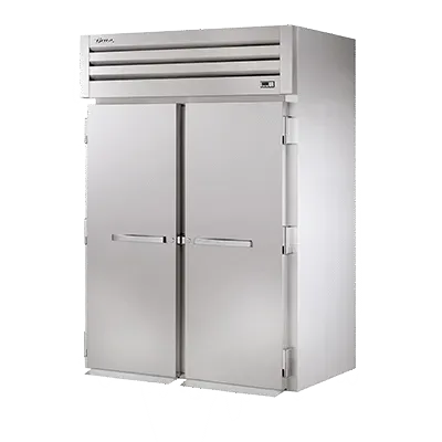 Transform your food service with the True Manufacturing STA2FRI-2S Freezer. This SPEC SERIES roll-in freezer is designed to meet the demands of a commercial restaurant. With two stainless steel doors, locks, and cam-lift hinges, this freezer ensures secure storage for your perishable items. The digital temperature control allows you to easily adjust and monitor the temperature, ensuring optimal food preservation. The incandescent interior lighting provides clear visibility, making it easy to locate items. The stainless steel ramps and front, along with the aluminum interior, offer durability and easy cleaning. With a powerful 1-1/5Hp compressor, this freezer provides efficient cooling while accommodating 27"W x 29"D x 66"H carts (not included). Made in the USA and UL EPH Classified, the True Manufacturing STA2FRI-2S Freezer is a reliable and high-quality addition to any commercial kitchen.