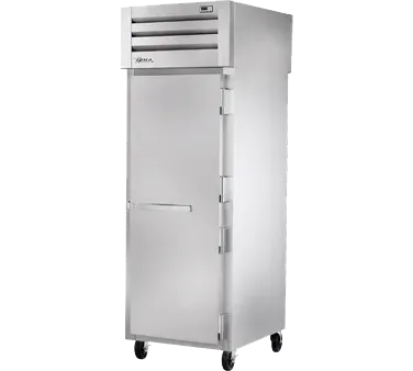 Introducing the True Manufacturing STG1RPT-1S-1G-HC Refrigerator, Pass-Thru - the ultimate solution to optimize your kitchen efficiency. This SPEC SERIES refrigerator is designed to meet the demanding needs of commercial restaurants, ensuring that your ingredients stay fresh and easily accessible. With its stainless steel front and aluminum sides, this unit not only looks sleek but also withstands the rigors of a busy kitchen. The pass-thru design, featuring a stainless steel door front and a glass door rear with locks, allows for convenient access from both sides, making it perfect for busy kitchen workflows. The cam-lift hinges ensure smooth operation, while the digital temperature control ensures precise temperature management. The LED interior lights provide excellent visibility, allowing you to quickly locate items. Equipped with three gray shelves and 5" castors for easy mobility, this refrigerator is a reliable and efficient addition to any commercial kitchen. Trust True Manufacturing for quality and durability - proudly made in the USA.