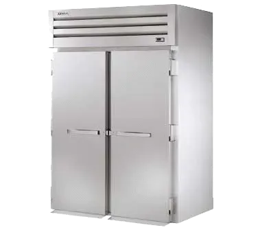 Realize kitchen dreams with the True Manufacturing STG2RRI-2S Refrigerator, Roll-In. This top-of-the-line refrigerator is designed to meet the needs of commercial restaurants, ensuring optimal storage and organization. With its two stainless steel doors equipped with locks and cam-lift hinges, you can rest assured that your ingredients and prepared dishes are secure. The digital temperature control allows for precise adjustments, while the incandescent interior lighting makes it easy to locate items. The stainless steel ramps provide easy access for roll-in carts, accommodating carts with dimensions of 27"W x 29"D x 66"H (carts not included). Made in the USA, this refrigerator is built to last with its durable stainless steel front, aluminum sides, and aluminum interior. With a 1/2 HP motor and 11.8 amps, this unit delivers reliable performance. Trust True Manufacturing to bring your kitchen vision to life.