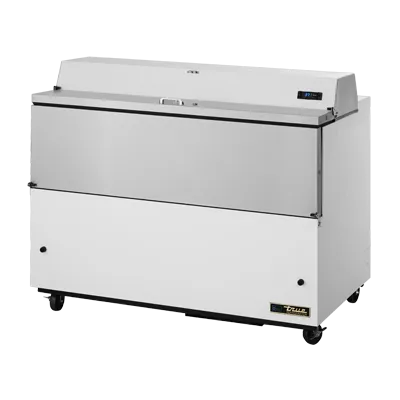 Create culinary magic with the True Manufacturing TMC-58-HC Milk Cooler / Station. This mobile milk cooler is perfect for commercial restaurant use, offering convenience and efficiency. With its forced-air system, it ensures consistent cooling for up to 16 crates of milk. The stainless steel drop front and hold-open flip-up lids provide easy access and durability. The lock feature ensures the safety and security of your milk supply. The white vinyl exterior gives it a clean and professional look, while the aluminum interior with a stainless steel floor guarantees hygiene and easy cleaning. The digital thermometer allows you to monitor the temperature accurately, while the heavy-duty floor racks provide ample storage space. With its 4" castors, this milk cooler is easy to move around your kitchen. Made in the USA and ENERGY STAR certified, the True Manufacturing TMC-58-HC Milk Cooler / Station is a reliable and eco-friendly choice for your restaurant.