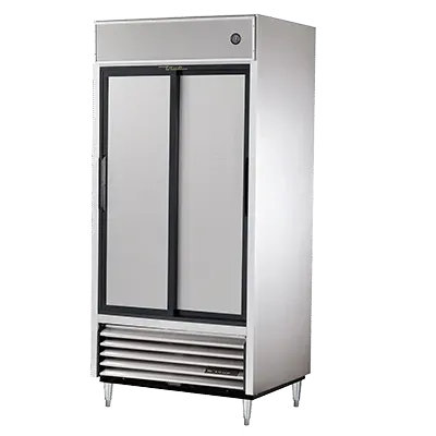 Discover kitchen perfection with the True Manufacturing TSD-33-HC Refrigerator, Reach-In. This top-of-the-line refrigerator is designed to meet the demanding needs of commercial restaurants. With its stainless steel sliding doors and front, as well as aluminum sides, this refrigerator not only looks sleek but also ensures durability and longevity. The clear coated aluminum interior with a stainless steel floor provides easy cleaning and maintenance, while the six PVC coated wire shelves offer ample storage space for all your ingredients and supplies. The interior lighting allows for easy visibility, even in dimly lit kitchens. Equipped with a 1/2 HP compressor and R290 Hydrocarbon refrigerant, this refrigerator is energy-efficient and environmentally friendly. Made in the USA and UL EPH Classified, the True Manufacturing TSD-33-HC Refrigerator, Reach-In is the perfect addition to any commercial kitchen, providing reliable performance and exceptional quality.