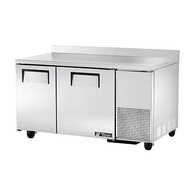Maximize your food service potential with the True Manufacturing TWT-60-32F-HC Freezer Counter. This two-section deep work top freezer is designed to meet the demands of a busy commercial restaurant. With its stainless steel top and rear splash, as well as front and sides, this freezer counter is not only durable but also easy to clean. The two stainless steel doors provide easy access to the spacious interior, which features four PVC coated wire shelves and an aluminum interior with a stainless steel floor. The 5" castors make it easy to move the freezer counter around the kitchen, while the side mount front breather ensures optimal performance. Powered by a 1/2 HP compressor and using R290 Hydrocarbon refrigerant, this freezer counter is energy-efficient and environmentally friendly. Trust True Manufacturing, a reputable brand known for its quality and reliability. Upgrade your restaurant's kitchen with the True Manufacturing TWT-60-32F-HC Freezer Counter.