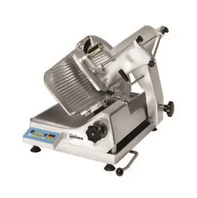 Effortless Culinary Excellence with the Univex 1000S Electric Food Slicer. This premium series slicer is designed to elevate your restaurant's slicing capabilities. With 12 automatic settings and a gravity feed system, this slicer ensures consistent and precise slicing every time. The 13" diameter knife and variable slice thickness of 0" - 0.875" (22mm) allow you to customize your cuts to perfection. The belt-driven motor operates at 35-64 strokes per minute, providing efficient slicing without compromising quality. Cleaning is a breeze with the tilting carriage and zero blade exposure feature, ensuring safety and convenience. The anodized aluminum construction guarantees durability and longevity, making it ideal for the demands of a commercial restaurant. Plus, the remote sharpener mounts in seconds, ensuring a sharp blade at all times. Elevate your culinary creations with the Univex 1000S Electric Food Slicer.