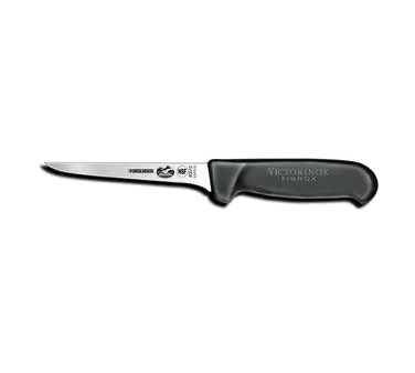 Enhance Your Restaurant's Culinary Efficiency with the Victorinox Swiss Army, 5.6413.12, Knife, Boning. This high-quality boning knife is a must-have tool for any commercial kitchen. With its 5" straight, narrow, and flexible blade, it effortlessly glides through meat, making it perfect for deboning and trimming. The black Fibrox Pro handle provides a comfortable and slip-resistant grip, ensuring safety and precision during use. Made from high carbon steel, this knife is incredibly durable and long-lasting, with excellent edge retention. Its NSF certification guarantees its suitability for use in a professional kitchen. Whether you're a chef, butcher, or restaurant owner, this Victorinox boning knife will significantly improve your efficiency and productivity. Invest in this reliable and authentic Swiss Army knife to elevate your restaurant's culinary experience.