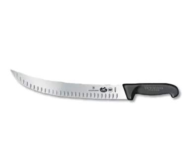 Culinary Mastery at Your Fingertips with the Victorinox Swiss Army, 5.7323.31, Knife, Cimeter. This professional-grade knife is a must-have for any commercial restaurant. With its 12" curved blade and granton edge, it effortlessly slices through large cuts of meat, making it perfect for butchers and chefs alike. The black Fibrox Pro handle provides a comfortable and slip-resistant grip, ensuring precision and control during use. Designed for durability, this knife is dishwasher safe and NSF certified, guaranteeing its suitability for commercial use. Whether you're preparing a roast or carving a turkey, this knife will elevate your culinary skills and help you achieve perfection in every dish.