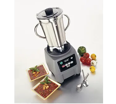 Achieve kitchen supremacy with the Waring CB15 Blender. This heavy-duty food blender is designed to meet the demands of a commercial restaurant kitchen. With a 1-gallon capacity and a removable stainless steel container, it can handle large batches of ingredients with ease. The electronic membrane keypad and 3-speed settings, plus pulse function, give you precise control over blending consistency. The clear lid allows you to monitor the blending process, while the die-cast base ensures stability during operation. Powered by a 3-3/4 HP motor, this blender is built to handle tough ingredients and continuous use. Made in the USA and certified by cETLus and NSF, you can trust in its quality and safety. Upgrade your restaurant kitchen with the Waring CB15 Blender and experience the power and reliability it brings to your culinary creations.