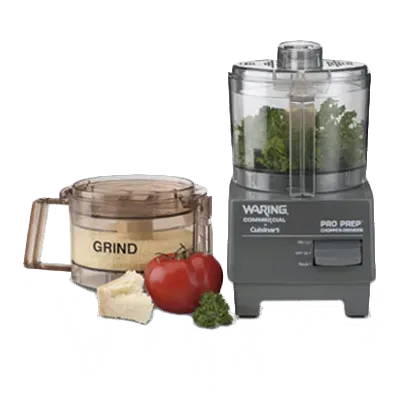 Ignite culinary passion with the Waring WCG75 Food Processor. This versatile benchtop/countertop appliance is a must-have for any commercial restaurant. With its 3/4 quart capacity and two separate bowl/blade assemblies, this food processor is perfect for both chopping and grinding. The clear plastic bowls are stackable with lids, making storage and organization a breeze. The dishwasher-safe parts ensure easy cleanup, saving you valuable time in a busy kitchen. Powered by a 3/4 HP hi-speed 2-pole induction motor, this food processor delivers reliable performance every time. Whether you're preparing ingredients for a signature dish or grinding spices for a flavorful blend, the Waring WCG75 is up to the task. Trust in the quality and durability of Waring, a trusted name in the industry. Upgrade your restaurant's efficiency and productivity with this top-of-the-line food processor.