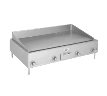 Culinary artistry redefined, the Wells G-24 Electric Countertop Griddle is a must-have for any commercial restaurant. With its smooth polished steel griddle plate, this griddle provides a spacious 46-7/8" W x 24-5/16" D cooking surface, allowing chefs to cook multiple dishes simultaneously. The stainless steel construction ensures durability and longevity, making it perfect for high-volume use. The zoned thermostatic heat control allows for precise temperature adjustments, ensuring consistent cooking results every time. The removable splashguard helps to contain any splatters or spills, keeping the cooking area clean and safe. Additionally, the 4" adjustable legs provide stability and flexibility in any kitchen setup. This griddle is UL, NSF 4, CE, and CSA certified, guaranteeing its quality and safety. Elevate your culinary creations with the Wells G-24 Electric Countertop Griddle.