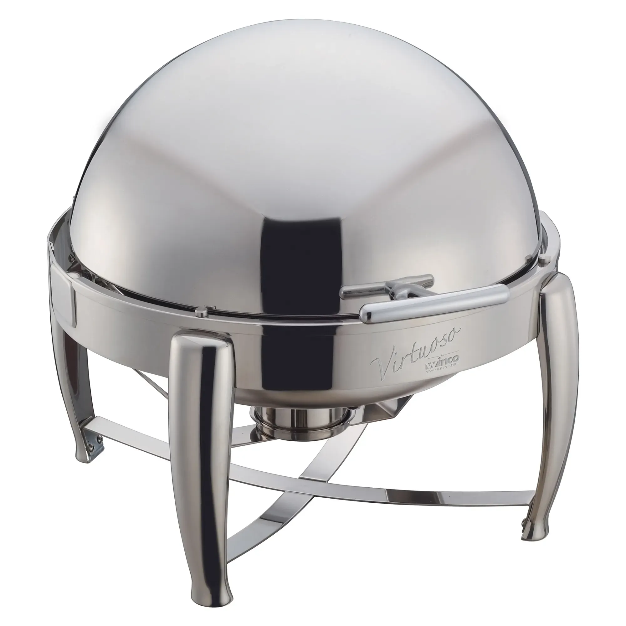 Bring precision to cooking with the Virtuoso Chafer by Winco. This 6 qt. round roll top chafer is designed to meet the high standards of any restaurant setting, ensuring both functionality and elegance. Crafted from 188 stainless steel with a mirror finish, the Virtuoso Chafer not only provides a sleek and professional appearance but also guarantees durability and longevity.